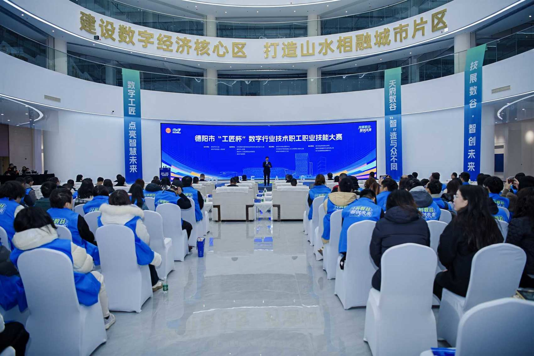 亦如德阳天府数谷党工委副书记、服务中心常务副主任周李峰所说:“本次大赛不仅是技能的竞技场,更是对数字经济人才活力的一次集中展示,也是对产业数字化转型趋势的深刻回应。”他表示,作为德阳市数字经济发展的核心承载区,天府数谷正凭借清晰的产业定位与持续优化的创新生态,加速汇聚人才、技术、资本等关键要素。